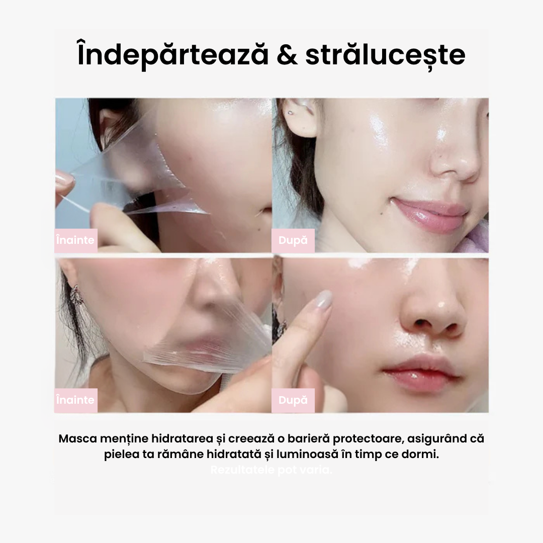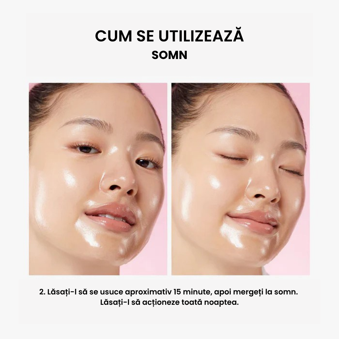 Formula sa peel-off inovatoare acționează timp de 8 ore pentru hidratare, fermitate și strălucire. Spre deosebire de măștile clasice, se îndepărtează ușor dintr-o singură bucată și lasă pielea proaspătă și revitalizată. Inspirată din îngrijirea coreeană, combină ingrediente puternice și tehnologie avansată pentru o piele fermă, netedă și luminoasă. Includeți-o în rutina de seară pentru un ten întinerit și radiant.