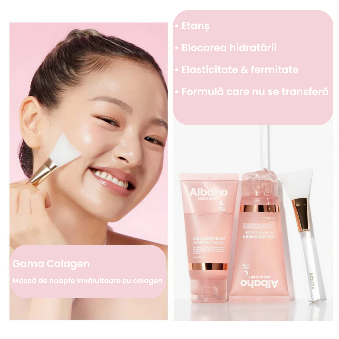 Experimentați o transformare de noapte cu Masca de Noapte Albaho cu Colagen, creată pentru a hrăni și proteja pielea în timp ce dormiți.
